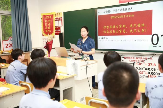 ▲石家庄市第四十四中学老师在进行考前动员。(受访者供图)
